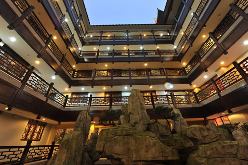 鳳凰鳳廷國際大酒店建筑風格突顯湘西民族民居的建筑風格。以苗家和土家的吊腳樓和四合院為基本元素,用現(xiàn)代居家觀念進行創(chuàng)新解構和重組,營造出一種讓外來人能感受到的原汁原味的湘西氣息,讓湘西本土人于陌生中感到親切、于熟悉中感到新鮮的韻味。