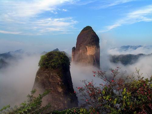 | 莨山,位于湖南省新寧縣境內(nèi)。南與桂林相連,北與張家界呼應(yīng),是國(guó)內(nèi)最為典型的丹霞地貌風(fēng)景區(qū),是國(guó)家重點(diǎn)風(fēng)景名勝區(qū),又是國(guó)家地質(zhì)公園,總面積108平方公里,轄紫霞峒、 扶夷江、駱駝峰、牛鼻寨、八角寨五大景區(qū),地質(zhì)結(jié)構(gòu)奇特,山、水、林、洞渾然一體。境內(nèi)有形神兼?zhèn)涞膶④娛、惟妙惟肖的駱駝峰、鬼斧神工?天下第一巷"、地造天設(shè)的鯨魚(yú)鬧海、氣勢(shì)磅礴堪稱亞洲第一的天生橋、高聳入云而又十分逼真的辣椒峰,這便是嘆為觀止的莨山六絕,這是大自然對(duì)莨山的恩賜,每一絕都舉世無(wú)雙。莨山還生長(zhǎng)繁衍著銀杉、珙桐、華南虎、云豹、靈貓、大鯢等珍稀動(dòng)植物,也為莨山的天然景色增添了無(wú)限靈動(dòng)與生氣。這里出土有10萬(wàn)年前的獼猴頭骨化石,有4500年前的新石器文化遺址,有清化農(nóng)民起義的寨堡,有晚清重臣劉坤一、劉長(zhǎng)佑、江忠源的宗祠、墓葬,有異彩紛呈的民族風(fēng)情,有膾炙人口的華采詩(shī)賦,明代縣人陳永猷留下了"夫夷(新寧古稱)勝景天成就,攝杖歸來(lái)入夢(mèng)頻"的美譽(yù),著名詩(shī)人艾青留下了"桂林山水甲天下,莨山山水賽桂林"的喟嘆。