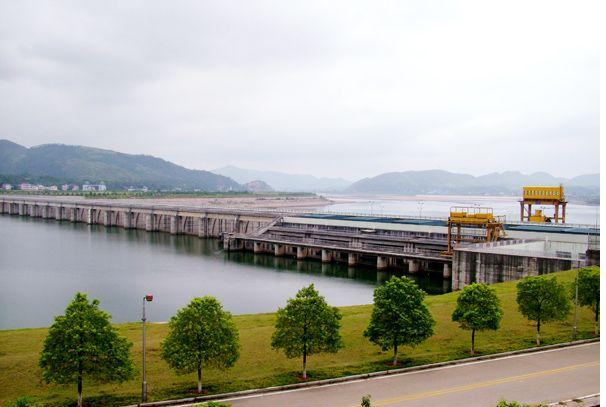 大壩的西面,是水利發(fā)電站,電站共有4臺(tái)機(jī)組,年發(fā)電量已達(dá)到5.56億千瓦小時(shí)。船閘座落在大壩的東側(cè),一次可通行二艘千噸級輪駁船隊(duì)。