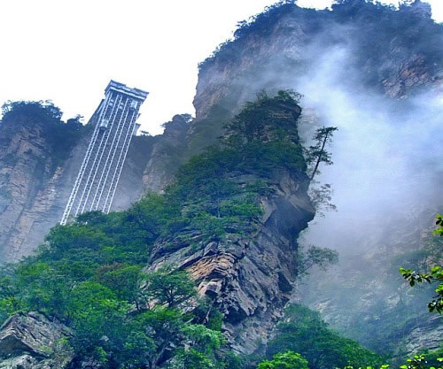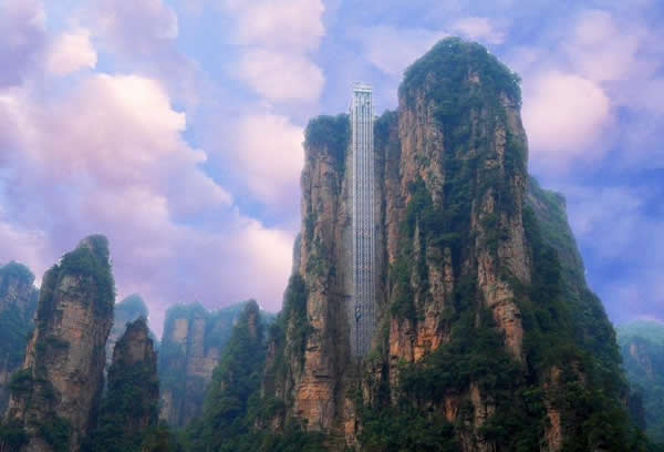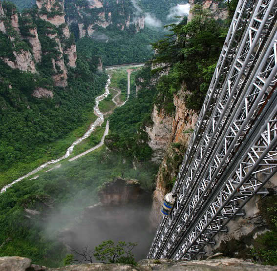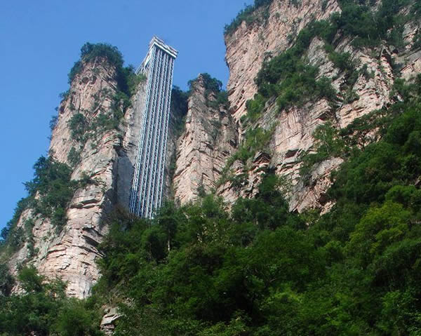| 百龍?zhí)焯菀挥谑澜缱匀贿z產(chǎn)張家界武陵源風(fēng)景名勝區(qū),1999年9月動(dòng)工,2002年4月投入營運(yùn),電梯的主要設(shè)備由德國知名電梯公司研究生產(chǎn),耗資人民幣1.8億元,被譽(yù)為“世界上最高、運(yùn)行速度最快、載重量最大的電梯”,也因此被載入吉尼斯世界紀(jì)錄。
