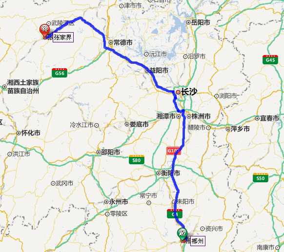 郴州去張家界自駕車線路圖