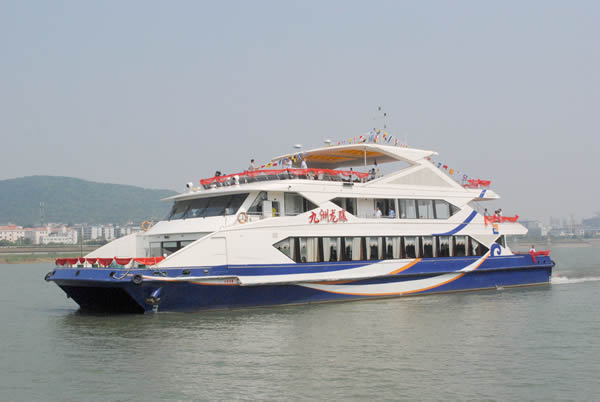 九洲龍驤豪華游船船長42米,寬12米,擁有280個客位,游輪采用了國際先進(jìn)的造船技術(shù),流線型的外觀設(shè)計、造型典雅時尚。船身共分為3層,可滿足游客餐飲、觀光、娛樂、會務(wù)等多種需求。