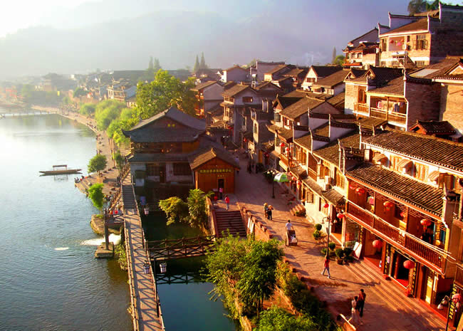 下 午:游覽千年古鎮(zhèn)--【芙蓉鎮(zhèn)】(門(mén)票100元/人自行購(gòu)買(mǎi)):參觀古鎮(zhèn)石板街,貞節(jié)牌坊、王村瀑布,品嘗劉曉慶米豆腐)。赴鳳凰古城(車(chē)程約2小時(shí)),抵達(dá)古城后安排入住酒店休息,之后可自由活動(dòng),欣賞鳳凰夜景!