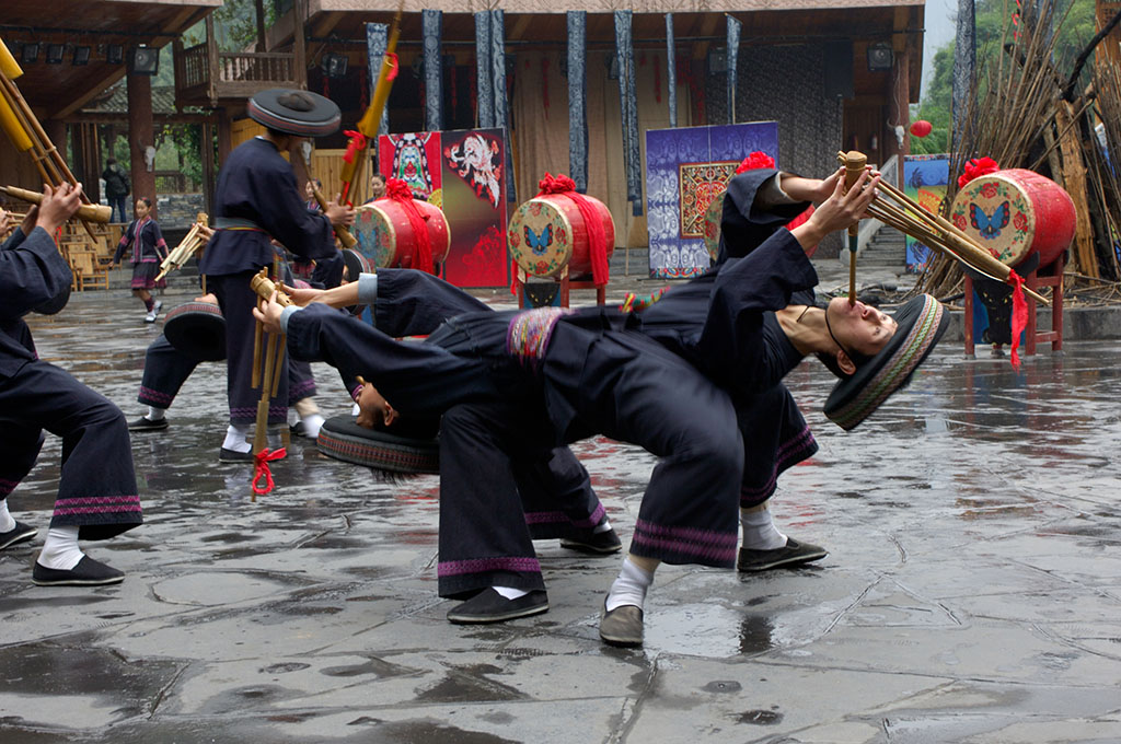 吉首市德夯風(fēng)景區(qū)地處云貴高原邊緣,位于湘西土家族苗族自治州首府吉首市西郊,距吉首市24公里。德夯旅游區(qū)以矮寨為中心,東到堂樂洞、西到大龍洞,南從武山、蓮臺(tái)山開始,北到流紗瀑布(全國落差最高的流紗瀑布和瀑布群),小龍洞,總面積約190平方公里。自矮寨鎮(zhèn)洞溪上行4公里至德夯苗寨,沿岸筒車、水輾、古渡、小舟,伴以苗家吊腳樓,一派田園詩情。九龍溪穿寨而過,四周山色清幽,懸崖如削......在青山綠水間,點(diǎn)綴著一幢幢灰瓦石基吊腳樓,一條條光滑的石板路,一座座精巧的石拱橋,一群群赤足紅裝的浣紗苗女。還有那古老的石碾和筒車,在水力的帶動(dòng)下,咕咕嚕嚕、咿咿呀呀,不知疲倦地旋轉(zhuǎn)著,一派田園詩情,這就是德夯苗寨。由于這里是純苗區(qū),苗族人民的風(fēng)俗習(xí)慣對(duì)德夯影響很大,苗族人民的四月八、跳鼓舞、三月三歌會(huì)、趕秋、接龍、推牛以及苗嶺情歌,無不吸引著中外游客。因此,古樸優(yōu)雅的苗族風(fēng)情又成為德夯人為景觀的特色。